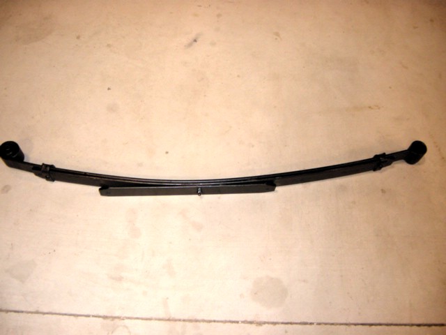 This single leaf spring plate is thinner than the multi leaf plate, and should be reinforced by welding reinforcement strips left to right across the plate front and rear. If this is not done, it may bend due to being held away from bottoming on the spring perch sides by the thicker leaf spring.