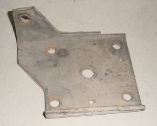 This lower spring plate is a 68 left rear for single leaf. It is a "double shear" type which means there is metal bracket on both sides of the shock eye. It extends down 3" below the spring plate